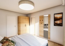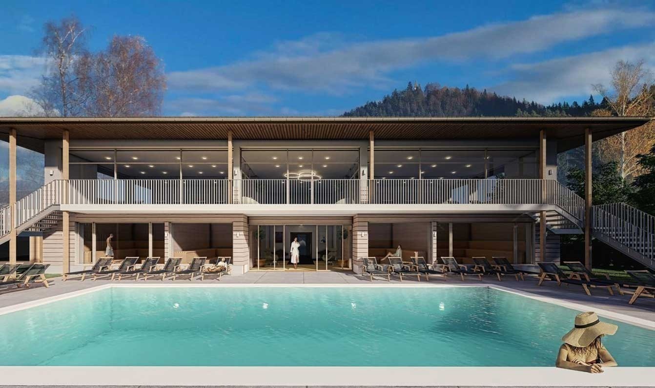 What every owner and hotel guest will appreciate is the private grassy beach that offers unrestricted access to the lake. Right next to the apartment building, there is a large wellness center with an outdoor heated pool and a world of saunas.