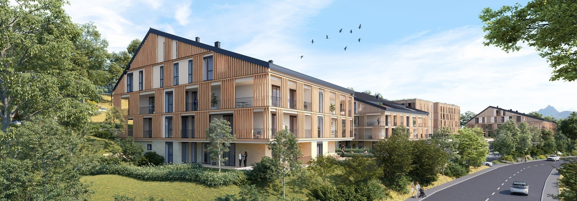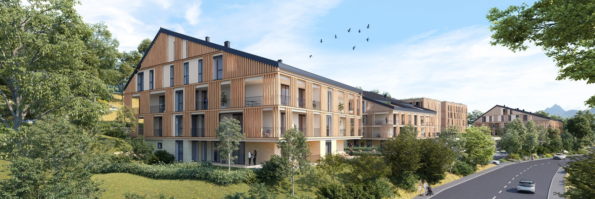 In the unique landscape of the Enns Valley, sensitive architectural design is a must. The architects of Hohensinn, known for their award-winning buildings in rural areas, have taken on this challenging task. The new buildings are designed to blend harmoniously into their surroundings, without forming an unnatural barrier. The height of the houses will therefore be graduated, and the facades of the houses will be clad in wood and natural stone. Parking will be possible in underground garages - so that the immediate surroundings of the houses is dominated by greenery and open spaces ideal for walking and relaxing.