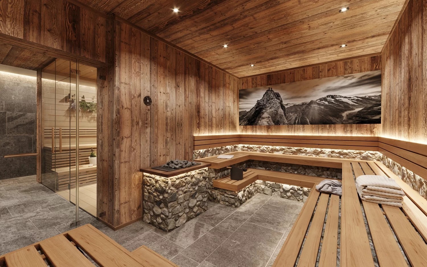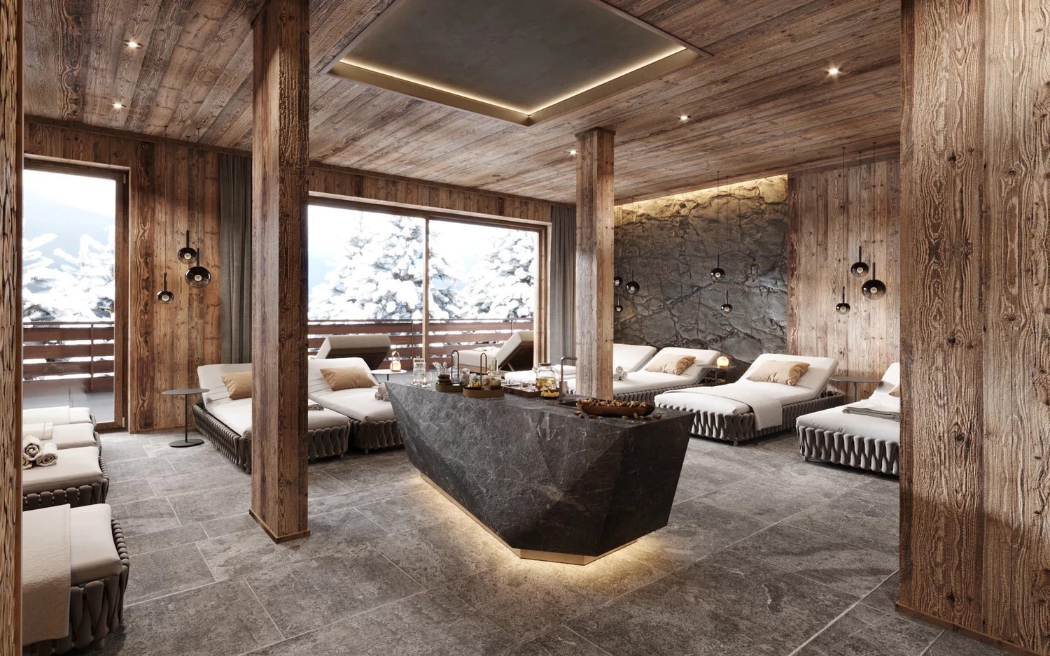Traditional Tyrolean architecture is combined with exclusive design and modern amenities, and beautiful views of the surrounding Alpine peaks add to the alpine chalet atmosphere.