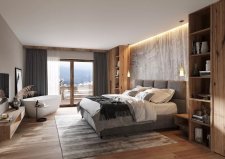 The apartments are spacious and offer a thoughtful layout of the individual rooms. The living room includes a branded kitchenette with full equipment. The bedrooms are furnished with quality boxspring beds for maximum comfort. Each apartment has access to a romantic terrace with views of the surrounding mountain landscape.