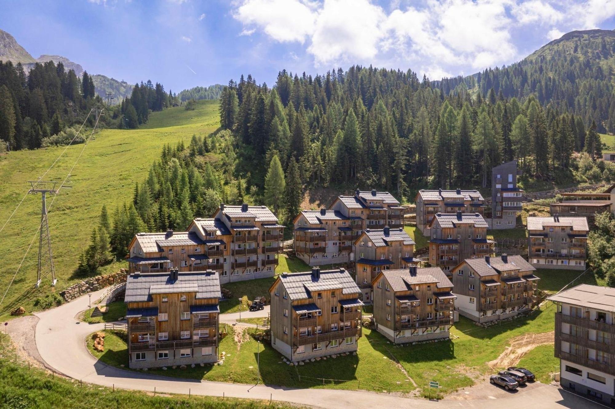 The resort consists of a total of 11 houses, which, thanks to their location on a hillside, offer magnificent views of the ski slopes and the surrounding mountain panorama of the Carnic Alps.