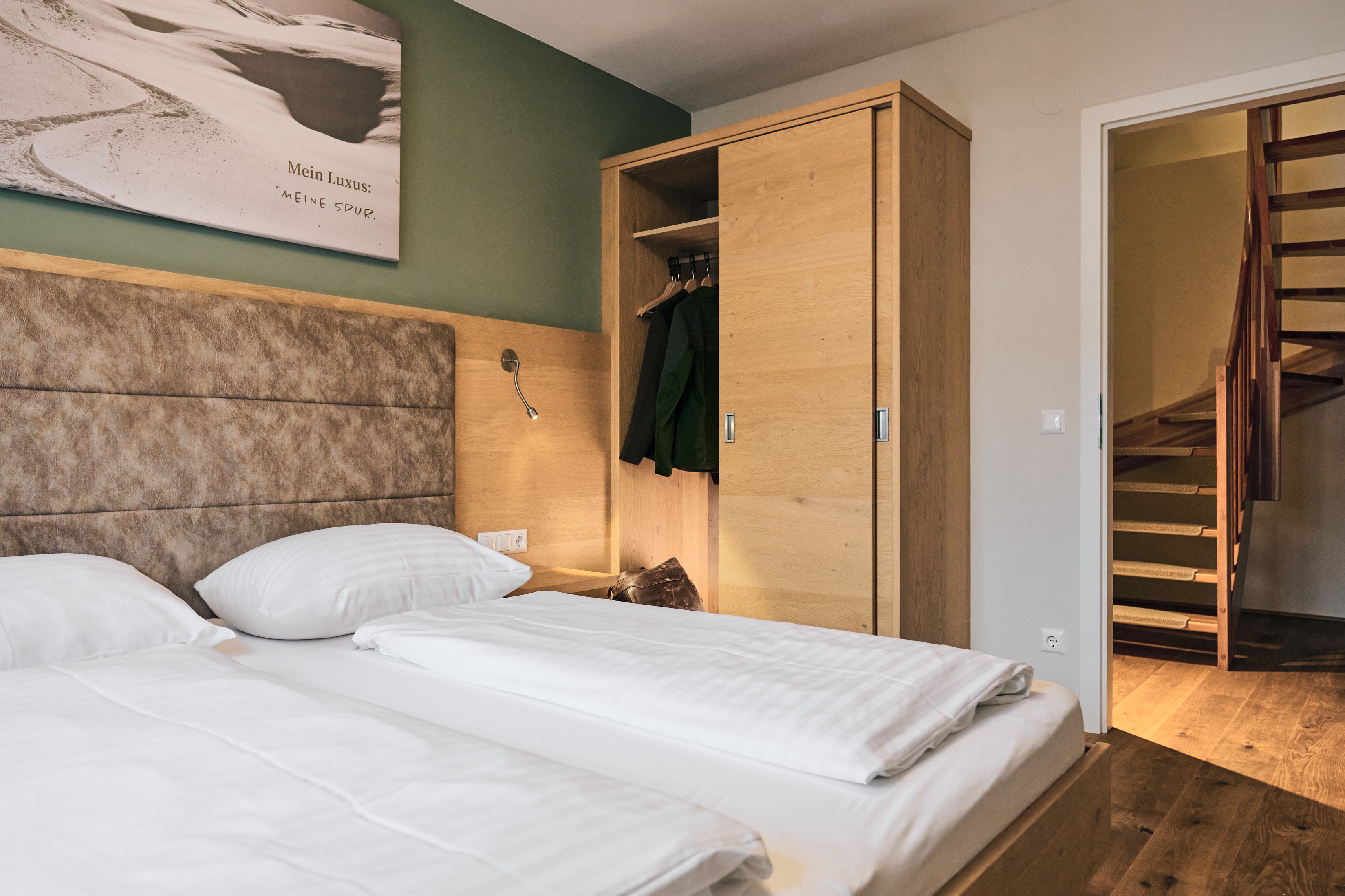 The apartments range in size from 71 to 130 m2 and offer comfortable accommodation for 6 to 12 people. All of them are located on mulltiple floors: one floor has a spacious living room and dining room, ideal for socializing, cooking, and dining, while the bedroom floors provide a cozy retreat, peace, and relaxation. The apartments have two or three bathrooms with toilets, and some even have a private sauna. There is a lockable ski equipment locker in front of the entrance door to each apartment.