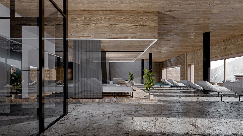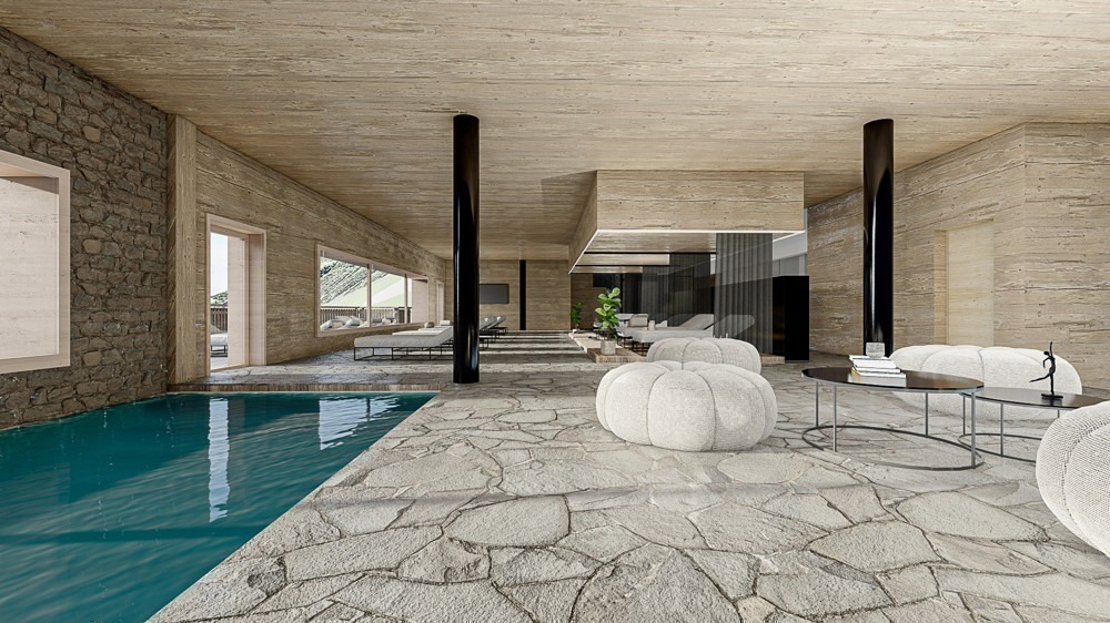 Hotelový komplex staví místní renomovaná společnost „Horizon Montagne“, která je známá vysokými standardy kvality a respektem k životnímu prostředí. Fasády jsou obloženy přírodním kamenem a modřínovým dřevem, aby dokonale splynuly s okolím.
