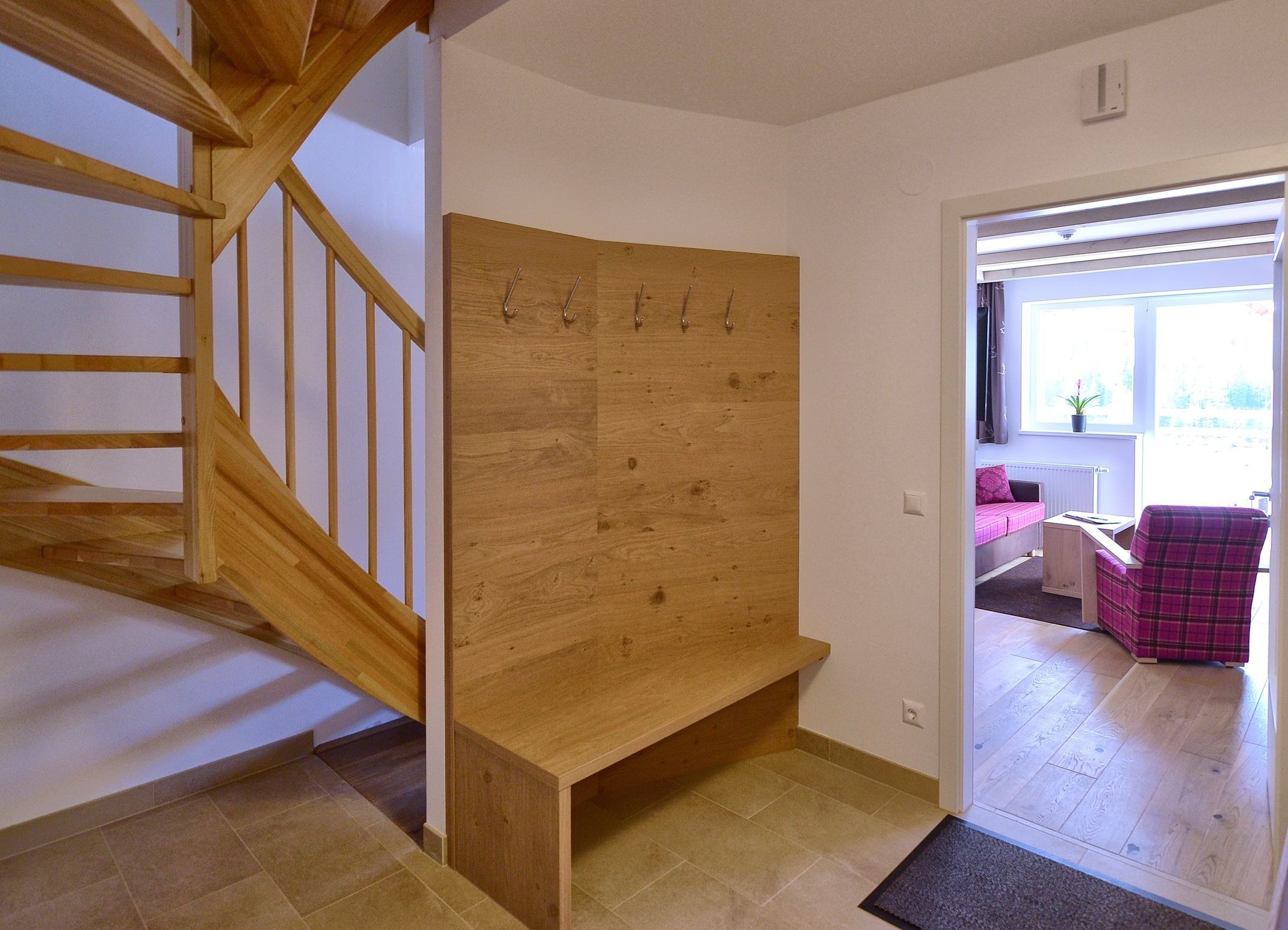 Apartmány mají rozlohu 71 až 130 m2 a nabízejí příjemné ubytování pro 6 až 12 osob. Všechny jsou vícepodlažní - na jednom patře se nachází prostorný obývací pokoj a jídelna, ideální pro společné setkávání, vaření a stolování, zatímco patra s ložnicemi poskytují útulné útočiště, klid a relaxaci. Součástí apartmánů jsou dvě nebo tři koupelny s WC, v některých najdeme i soukromou saunu. Před vstupními dveřmi do každého apartmánu se nachází zamykací skříň na lyžařské vybavení.