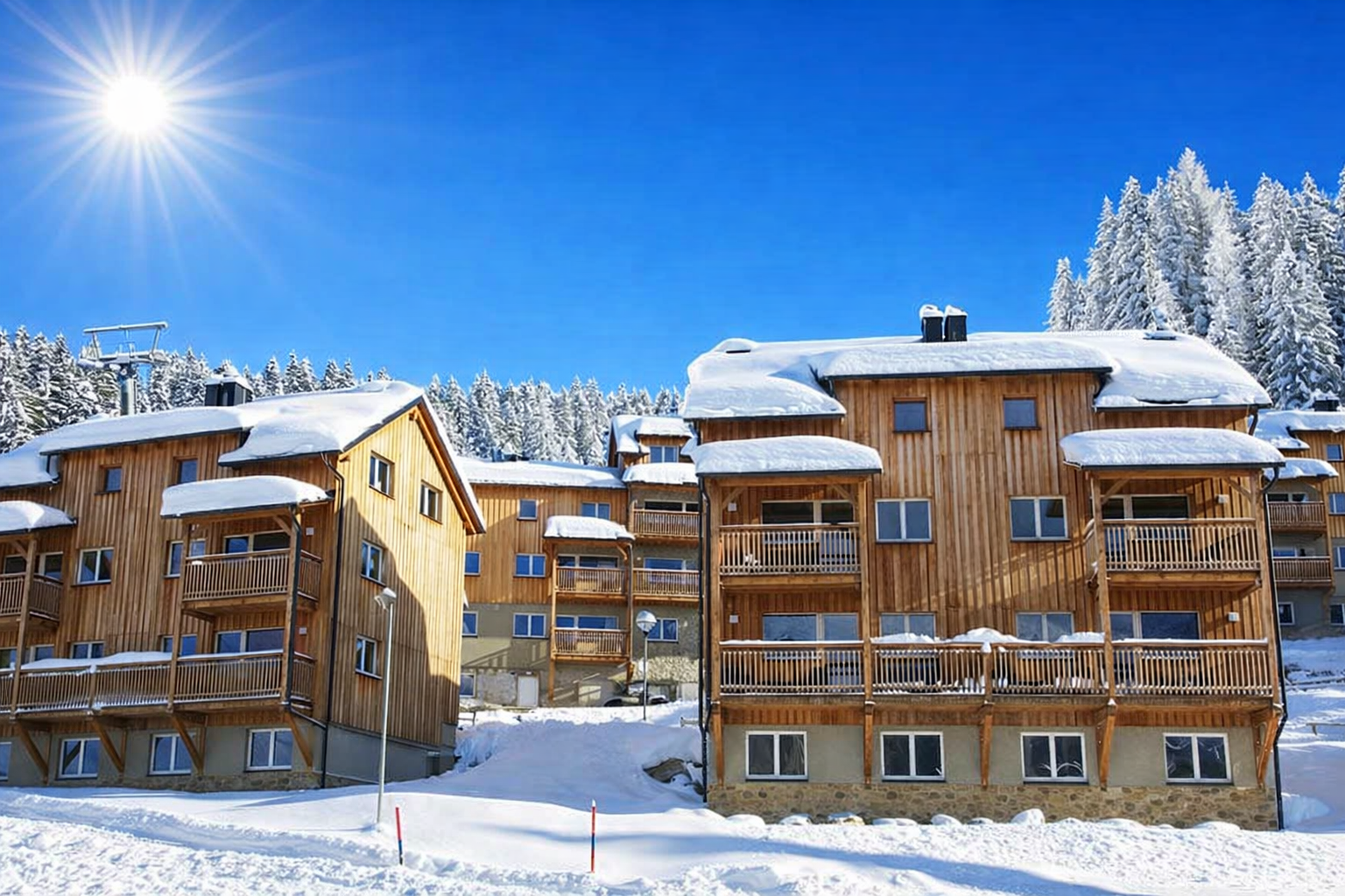 Pojem ski-in ski-out znamená, že môžete vyjsť priamo zo svojho apartmánu na lyžiarsky svah a pohodlne sa z neho vrátiť. Žiadne autobusy, žiadne hľadanie parkovacích miest, žiadne chodenie v lyžiarskych topánkach po ceste. Takýchto nehnuteľností je na predaj veľmi málo. Možnosti výstavby v bezprostrednej blízkosti zjazdoviek sú z dlhodobého hľadiska obmedzené a nové projekty v týchto lokalitách prakticky neexistujú.