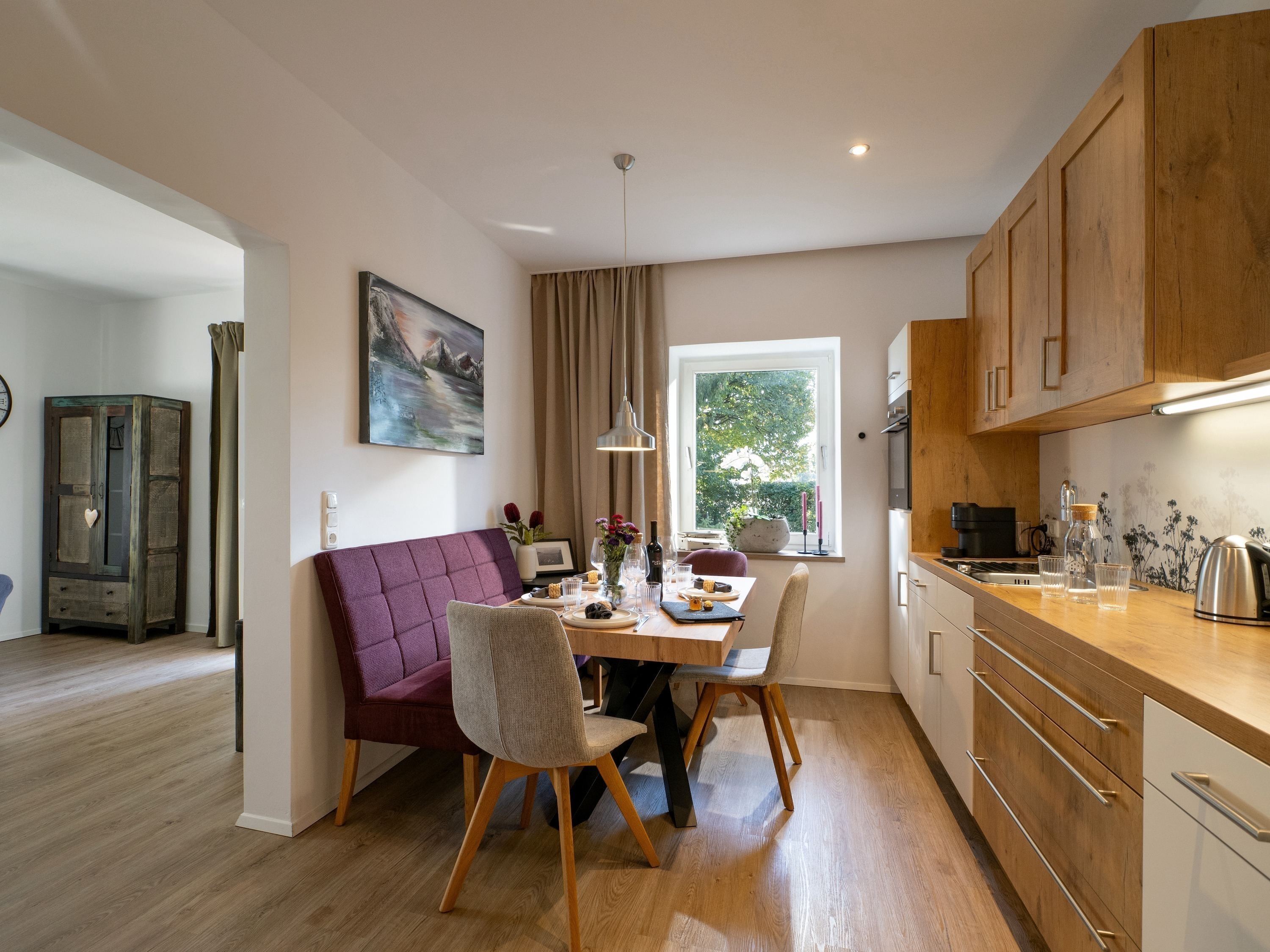 Apartmán bol starostlivo zrekonštruovaný a vybavený kvalitnými materiálmi, ako sú krásne vinylové podlahy s vzhľadom dubových dosiek. Niektoré tradičné prvky, ako napríklad krásna kachľová pec, boli zachované.