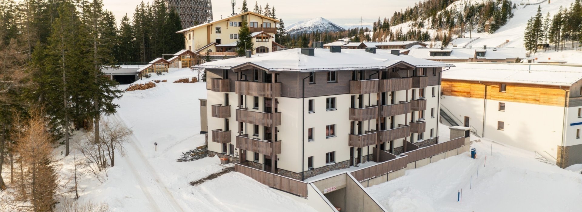 Práve v horskom sedle, iba 500 metrov od hlavnej lanovky, v dochádzkovej vzdialenosti od reštaurácií, obchodov a barov, bol práve dokončený a uvedený do prevádzky nový apartmánový komplex s 19 bytmi a podzemnou garážou.