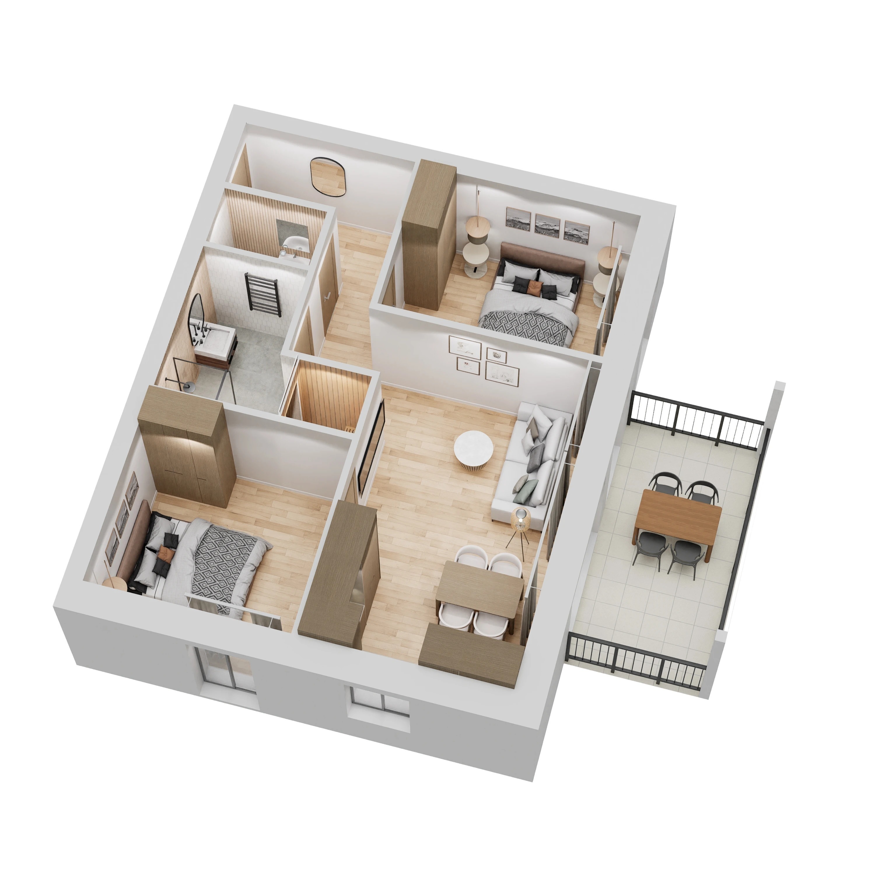 V cene apartmánu je zahrnuté kompletné vybavenie (nábytok, vybavenie kuchyne, vybavenie kúpeľne, súkromná infračervená kabína atď.).